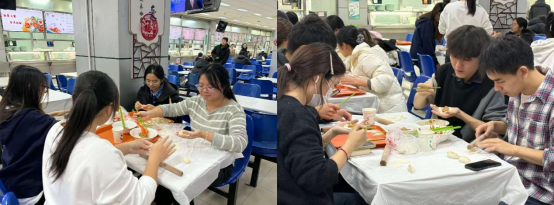 活动伊始,师生们分组协作,各展手艺。形态各异的饺子在欢声笑语中陆续诞生,有传统的元宝形、柳叶形,也有创意十足的"信科特色"饺子。食堂里暖意融融,冬日的寒冷被大家的热情驱散,温暖在指尖和心头流淌。