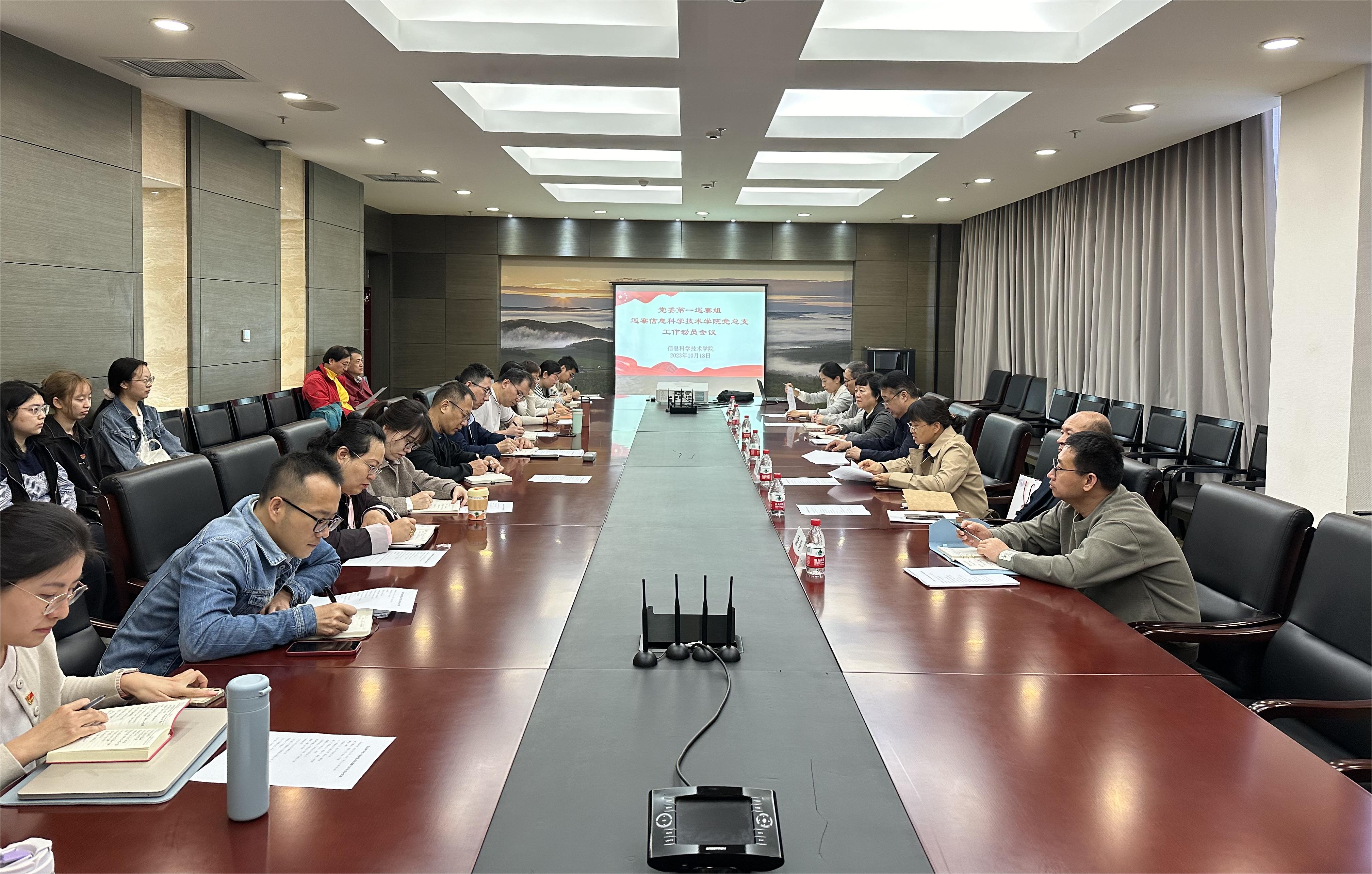 第一巡察组组长张荟霖做动员讲话,通报巡察工作重点任务、工作安排和工作要求。张荟霖指出,本轮巡察是公司党委对标对表党中央、教育部党组新精神新要求的首轮巡察,将聚焦高质量发展,围绕“教育强国,北外何为”命题,着力以高质量巡察推动事业高质量发展。巡察组将以“四个落实”为抓手,聚焦重点任务开展监督检查。巡察时间为三周左右。希望信科公司党总支要把接受巡察监督作为一项重要的政治任务,学院领导班子成员和全体教职工要本着对党的事业高度负责的态度,积极支持配合巡察组工作,巡察组成员将严格依规依纪依法开展巡察,与信科公司党总支共同完成好公司党委交付的巡察任务。
