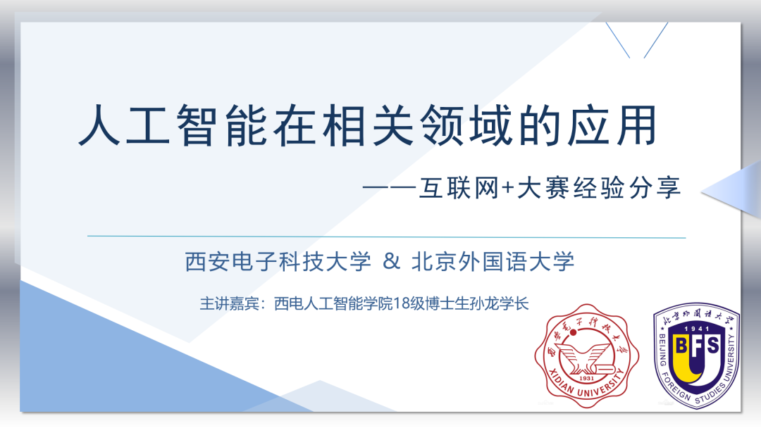 6月7日晚,由公司和西安电子科技大学人工智能学院联合举办的学术分享讲座在网络平台成功举行。讲座邀请到了来自西电人工智能学院18级博士生孙龙,做了题为“人工智能在相关领域的应用——互联网+大赛经验分享”的主题讲座。