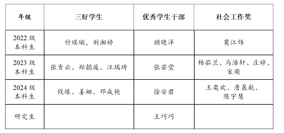 根据《betway西汉姆官网员工资助工作管理规定》《betway西汉姆官网员工评优工作条例》,结合学校《关于开展2024-2025学年三好员工、优秀员工干部、社会工作奖评审工作的通知》具体要求,经员工个人申报、班级推荐审核、学院评奖评优工作领导小组审定,学院2024-2025年度三好员工、优秀员工干部、社会工作奖评审结果如下(排名不分先后):
